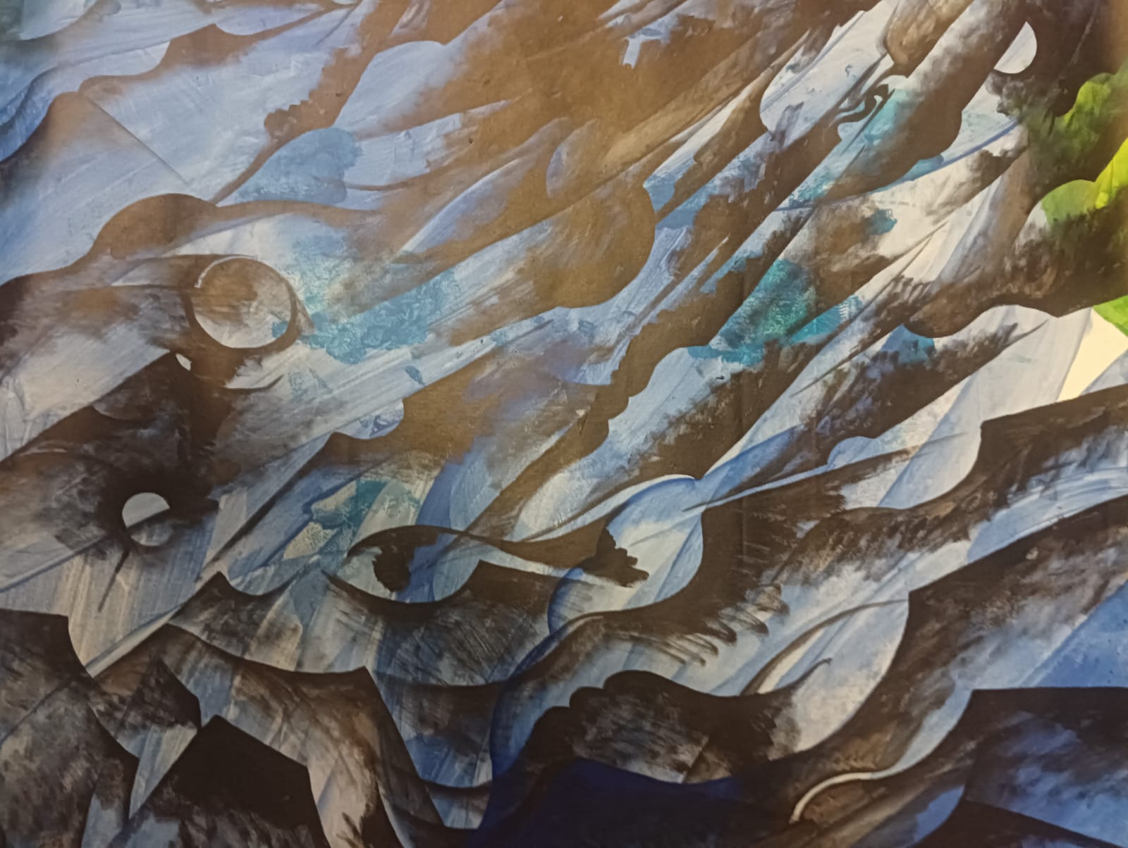 "Il ...Non Finito", Angelo Falmi, 90x90 cm, acrilico su tela, 2023; è un dipinto che ricorda che ogni dipinto non finisce mai, respira nei suoi colori..che si incontrano e si mescolano reciprocamente.